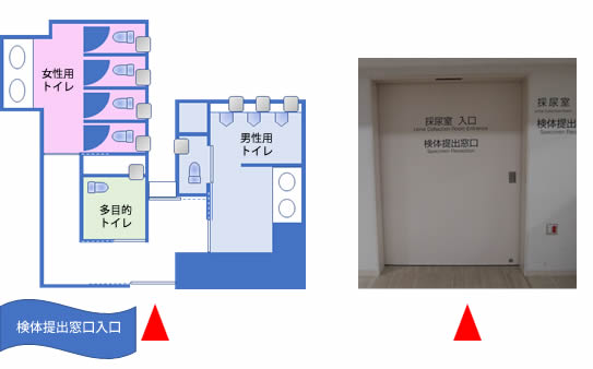『採尿室入口』より採尿用トイレへお入り下さい。
